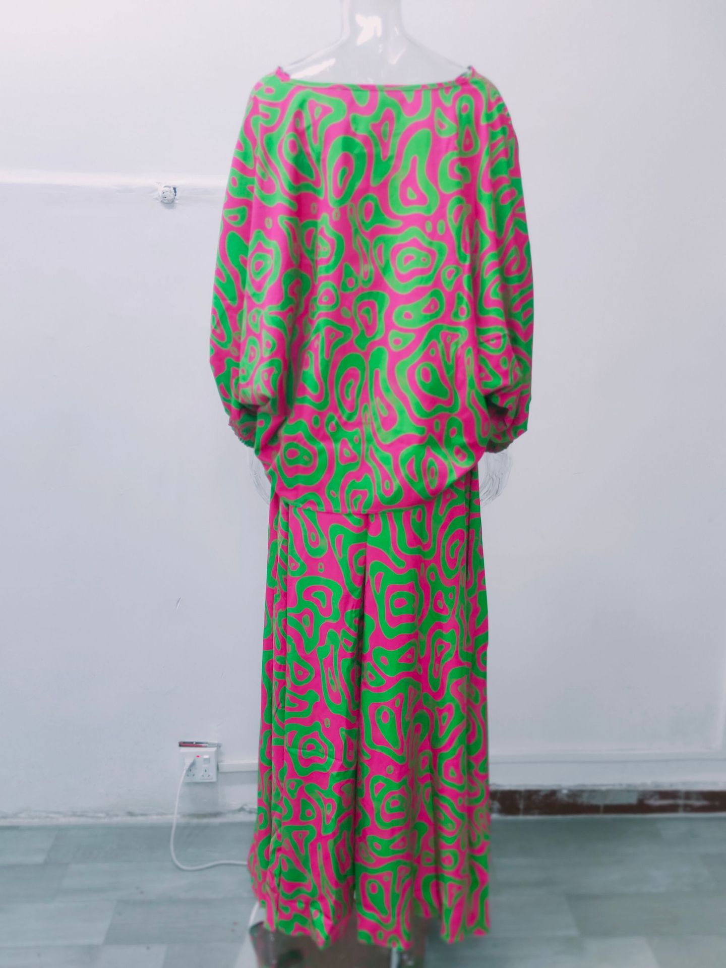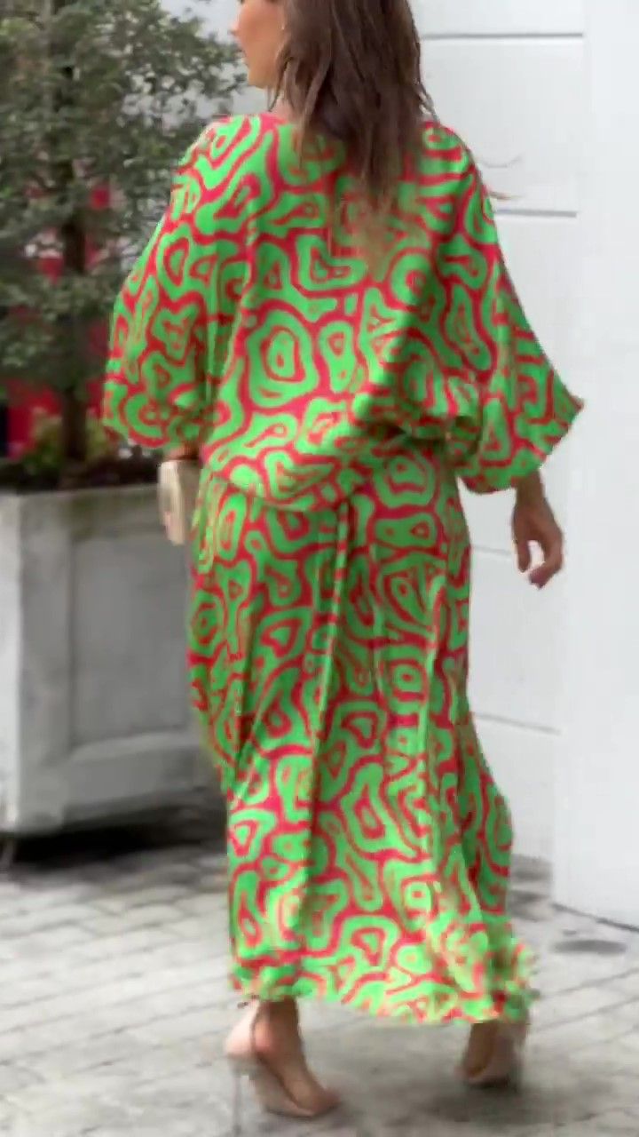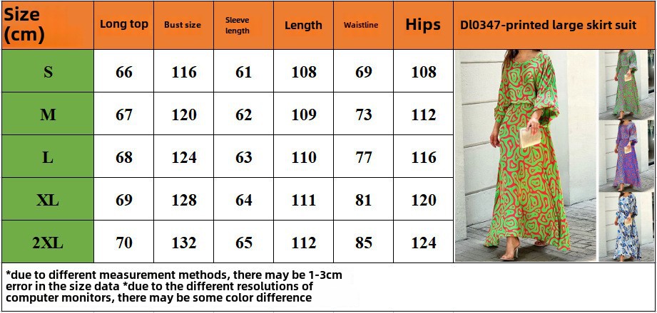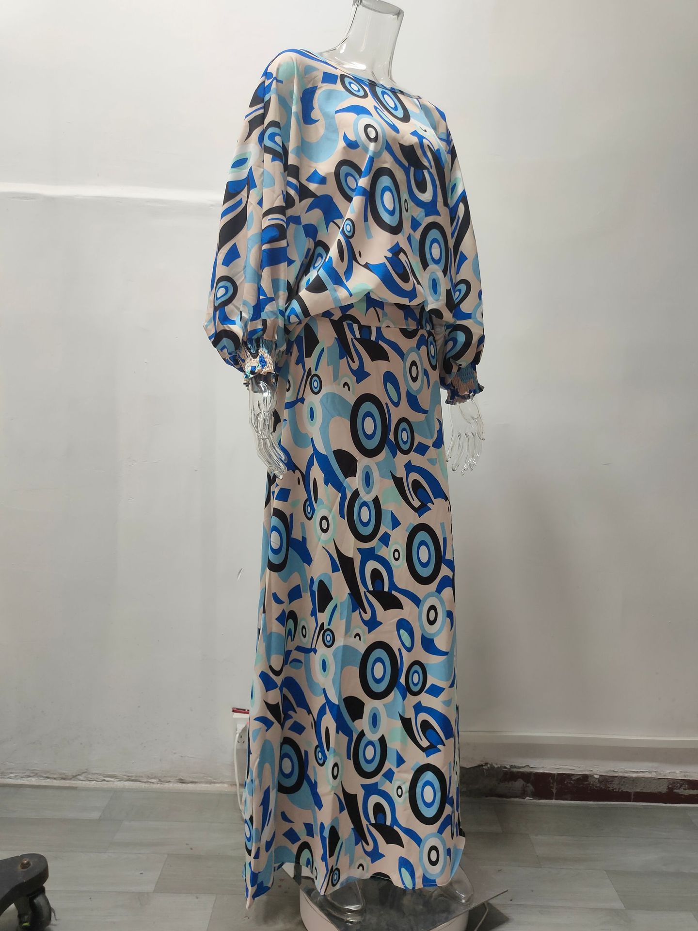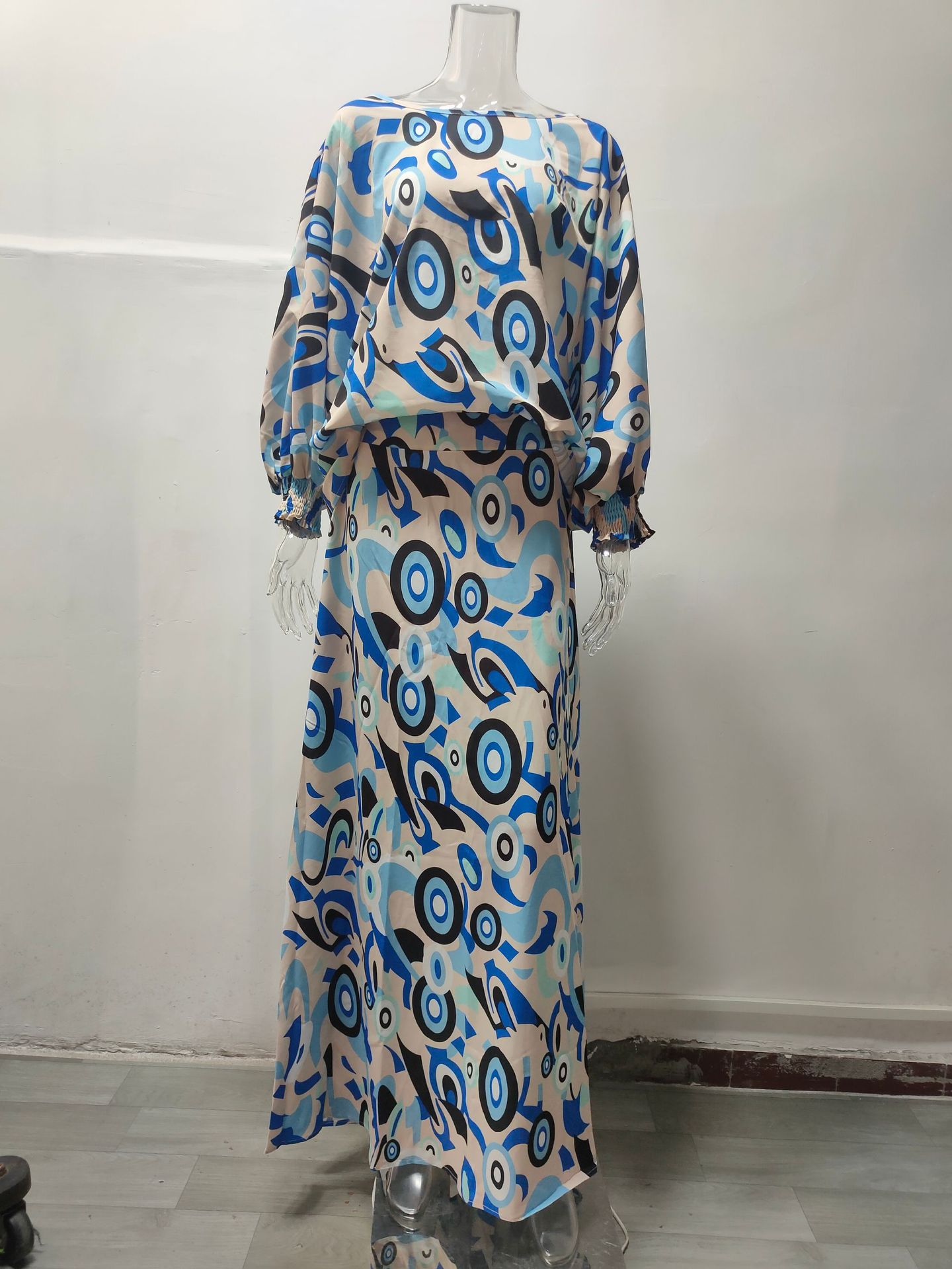 Women's Summer New Loose Large Size Printed Long-sleeved Top High Waist Half-length Dress Suit